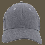 * Sublimated heathered, lightweight polyester blend * Perforated side panels * Breathable * Wicks moisture * Low-profile, structured crown * Black undervisor * Front panel eyelets * Pro-stitched finish * Hook-and-loop adjustable * A-Flex(r) stretch sweatband