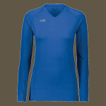 84% polyester/16% spandex knit with color secure(r) technology that helps prevent dye migration * 90% polyester/10% spandex wicking mesh inserts with color secure(r) technology that helps prevent dye migration * 4-Way stretch properties allow for increased mobility * Wicks moisture * Ladies' fit * Tag-free label * High Five logo on right chest * V-neck collar * Strategically placed seams for maximum mobility and comfort * Raglan sleeves * Designed to conform to NFHS specifications for a solid jersey